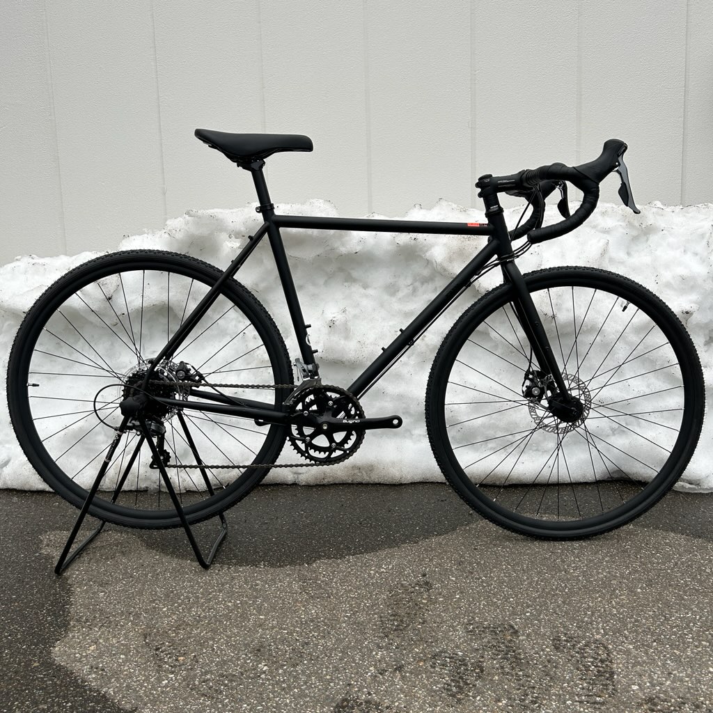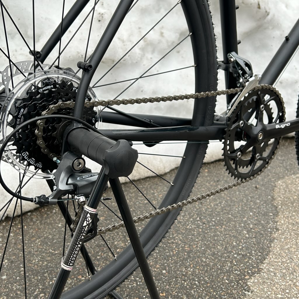 シャープなホリゾンタルフレームが美しい名機「フェザー」フレームをベースに、舗装路以外の環境にも対応できるようにアレンジされた汎用性の高いバイクです。バテッドクロモリ管によるしなやかさと剛性のバランスはロングツーリングからタウンユースまで幅広く対応。また、前後キャリア搭載可でバイクパッキングにもおすすめです。メカニカルディスクブレーキ、シマノCLARIS(2×8)コンポーネントです。
