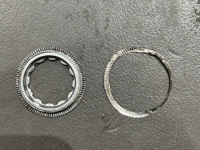 お預かりしたスプロケットのロックリングスペーサーが変形していたので新しい部品と交換しました!
