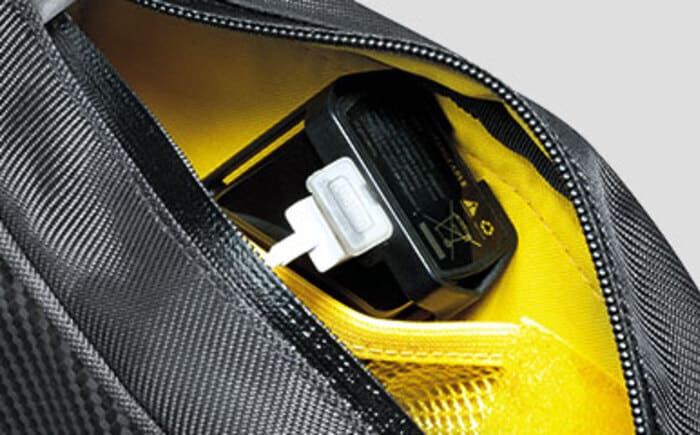 携行品に素早くアクセスできるトップチューブ バッグです。 充電用ケーブルを出せるよう、側面に穴が備えられています。MサイズとLサイズがあります。