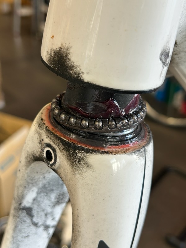 ヘッドベアリングには新しいグリスを入れて組付けます。