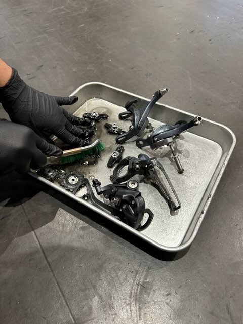 プーリーやブレーキシューも外して洗います。