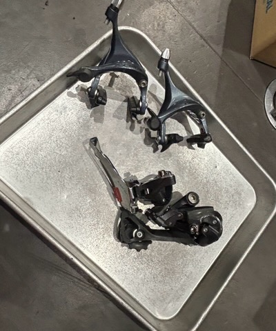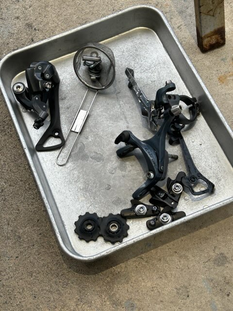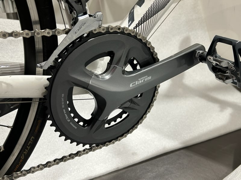 クランクはヒビが入っていたので交換し、フロントディレイラーも変形していたので新品に交換しました!
