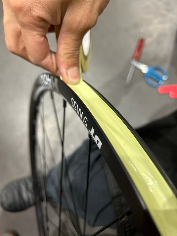 今回からチューブレス化する為にチューブレスリムテープを巻きます。
