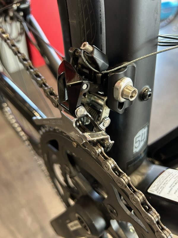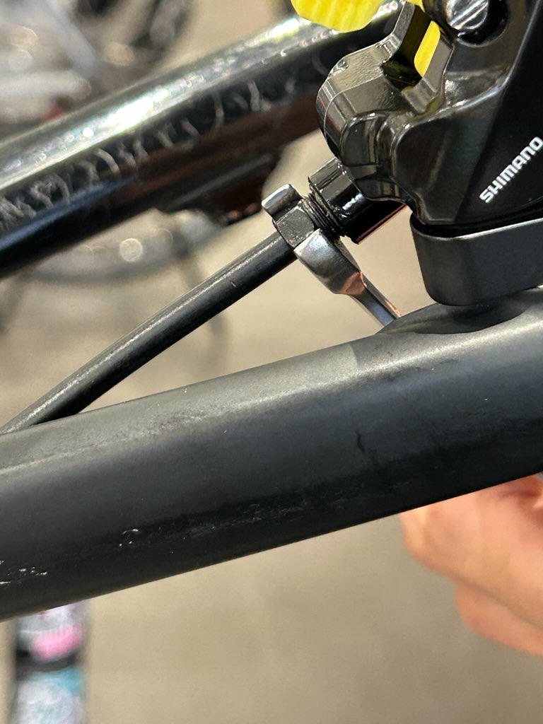 シフトワイヤーをディレイラーに取り付けて変速調整します。