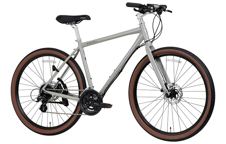 アルミフレーム + アルミフォーク、2×8段変速のリムブレーキ仕様のクロスバイクです。フロントライトとキックスタンドが標準装備されます。