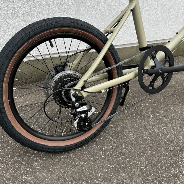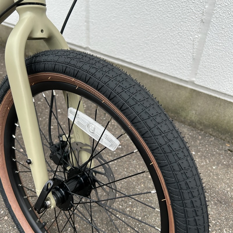 トップチューブはおなじみの強度の高いBENDED TUBEを採用。タイヤも20×2.3と太いタイヤで乗り心地抜群。