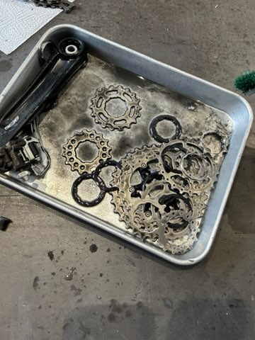 スプロケットをディグリーザーで洗浄します。