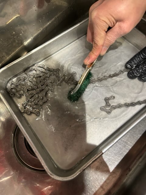 チェーンの汚れも落とします。