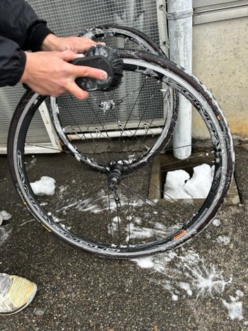 ホイールも洗います。