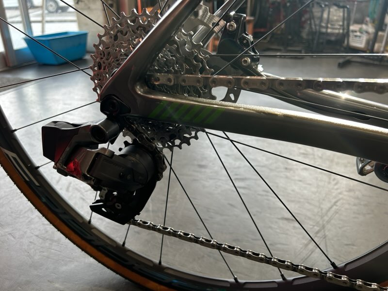 クランクとチェーンを取り付けて変速調整をします。