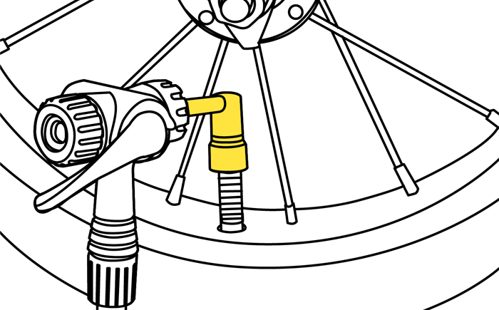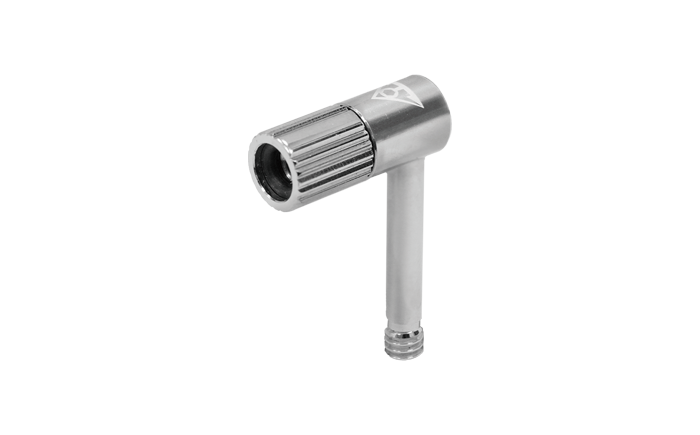 ポンプヘッドが入りにくいディスクホイールや小径車に便利な仏式バルブ用アダプター。 チェックバルブを内蔵し、口金接続前後のエアーロスを防ぎます。